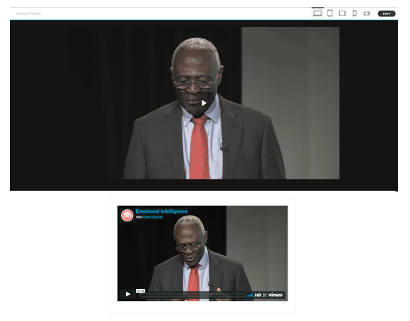Do you know what the original height/width of the video is? Can you see if the embed code has included height and width attributes? Would love to see a sample of this Rise course or a link to the video as well so that we could play around with it.