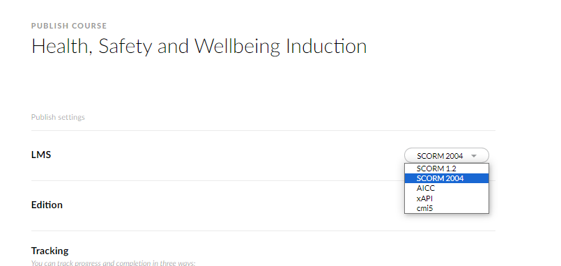 Does anyone have any idea why this might be occurring? Is it worth trying different SCORM formats (see other image), like should I try SCORM 2004.