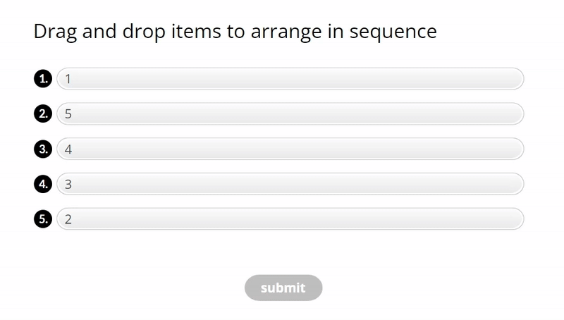 - Enable the Submit button only after at least one (or all) items have been dragged and dropped.