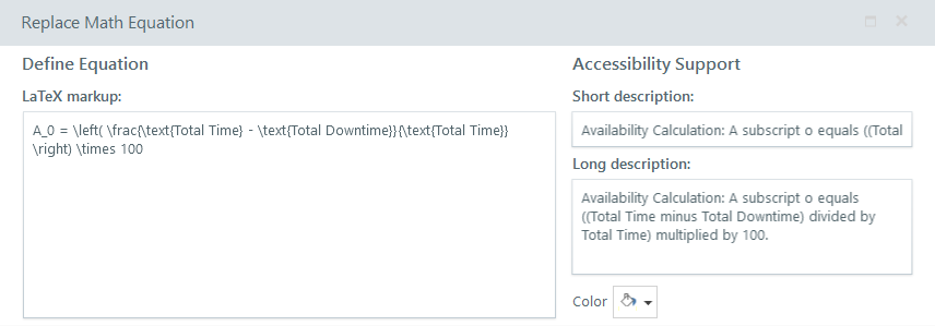 Our 508 review team indicated JAWS is reading the LaTeX equation as a button, which is not 508 compliant. This is what I have: