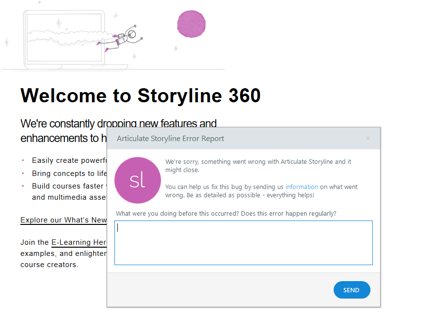 I have tried via the Articulate 360 app, by selecting Storyline on my start menu and by clicking new within an existing module and all have the same outcome.