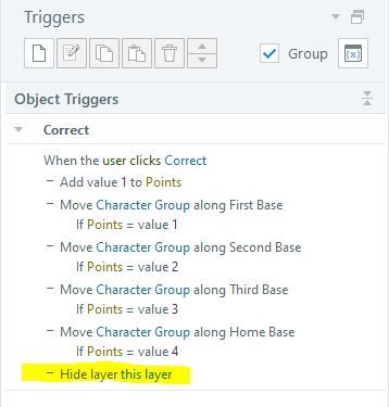 Help, I think I have the wrong trigger order. I want to make it so that when a user selects a random ball to reveal a question and that they have to select the correct answer before they can select another ball and in turn reveal the next question. At the same time, the user would move to the next subsequent base when they answered the question correctly. That doesn't seem to be happening when you click the baseballs randomly.