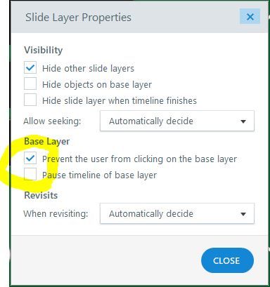 1. Select a layer and open the Layer Properties dialogue box and check the "Prevent user from clicking on the base layer" option: