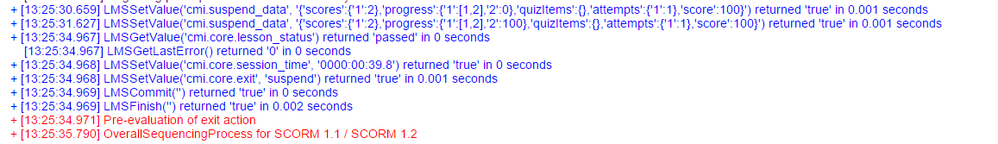 Rise works similar to Storyline in that we're sending the lmscommit to your LMS when you exit the course (using the browser close in Rise, or in Storyline you could also have an exit course button) or when you reach the completion element. You can see and test this behavior at SCORM Cloud, which is an industry standard in LMS testing, and has a built in debug mode which I included snippet of a tested Rise course below, and on this attempt I closed the browser window: