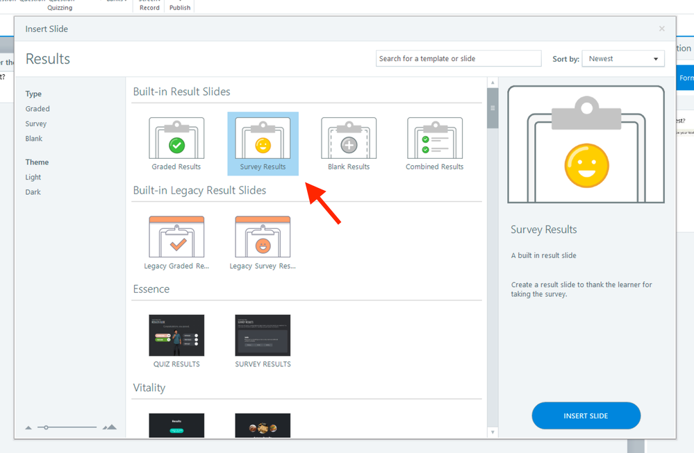 Short answer question slides work similarly as graded question slides. Once you've finished adding your survey question slides to your Storyline 360 course, you can use a Survey Results Slide to send the responses to an LMS.