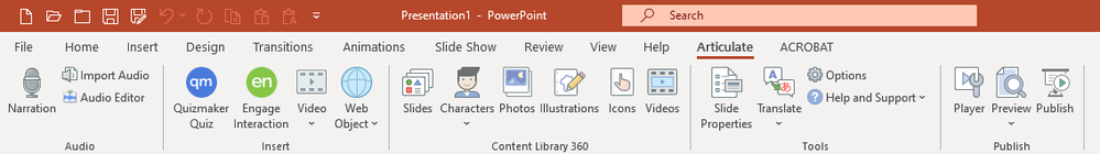 FYI: Studio, an add-on to PPT, was Articulate's first product. It can still be used to publish a course developed in PowerPoint. Engage and QuizMaker work with Studio, so a PPT-based course can have interactions and quizzes.