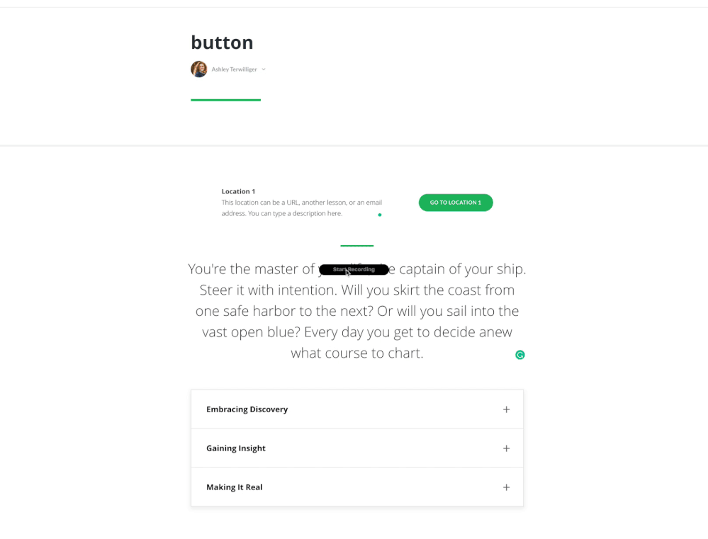 What I mean is, while you can currently link from one lesson to another using buttons, and people have asked for that ability to be added to text hyperlinks as well, I'd like to also request the ability to link from one place on a page to another. Like in Wikipedia, where you can link to a particular section on the page, that's what I'd like to be able to do in Rise. So if I have one lesson with a few different parts in it, users could jump around between sections using buttons and/or hyperlinked text in the sections.