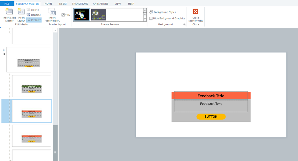 In slide view and preview, the "Correct" layer matches the feedback master.