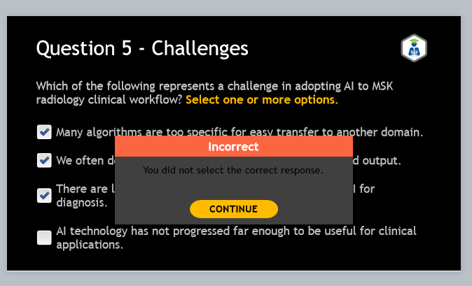 However, the "Try Again" and "Incorrect" feedback boxes are now a very dark grey, and the header font has changed from black to white.