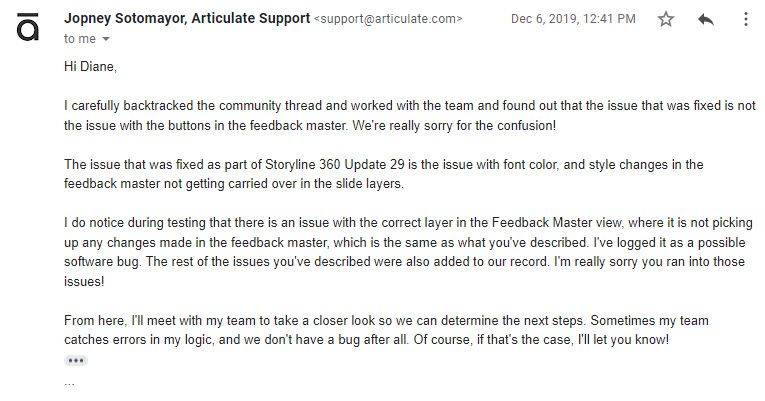 - a number of issues with the feedback master have been identified and communicated by members of this community - going back more than 5 years, according to this conversation thread