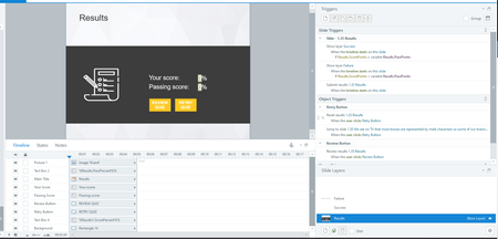 We have one quiz in our course which results in a final assessment. The results screen displays the learner's score and the passing score of 80%.