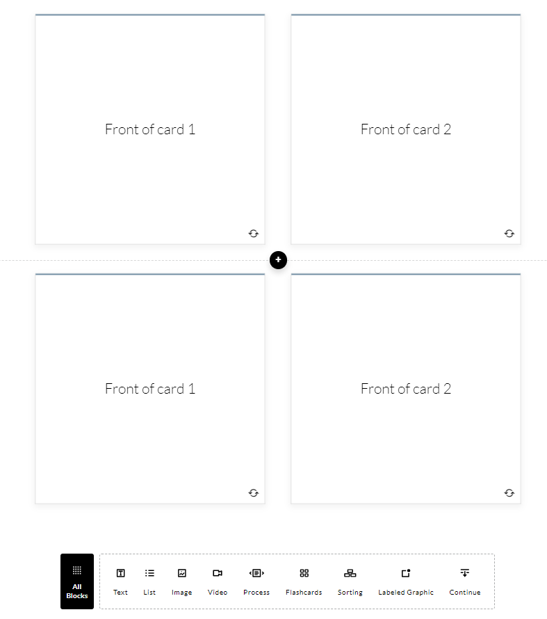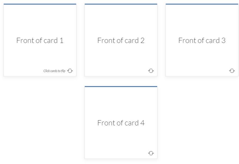 If you want an even layout (not having the fourth card below a row of three), make two flashcard interaction blocks.