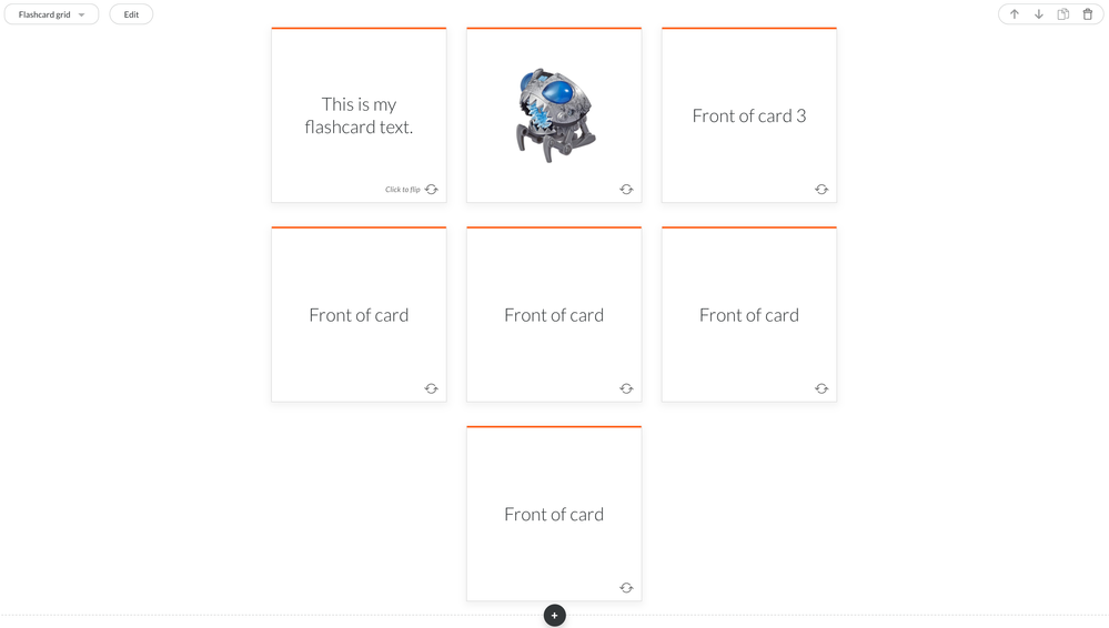 Hi Jenn! You can do 7 flashcards in a single block so that they're all the same size. Just click Edit in the upper left of that block, and click the Add button beneath the existing cards. It would look like this: