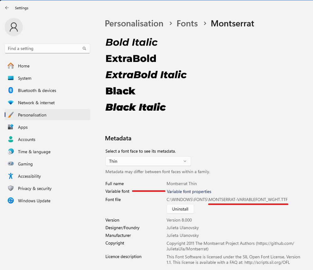 That seemed to fix it but I am still checking with a few reviewers! Hopefully variable fonts can get filtered out or functionality improved to have them work as is!
