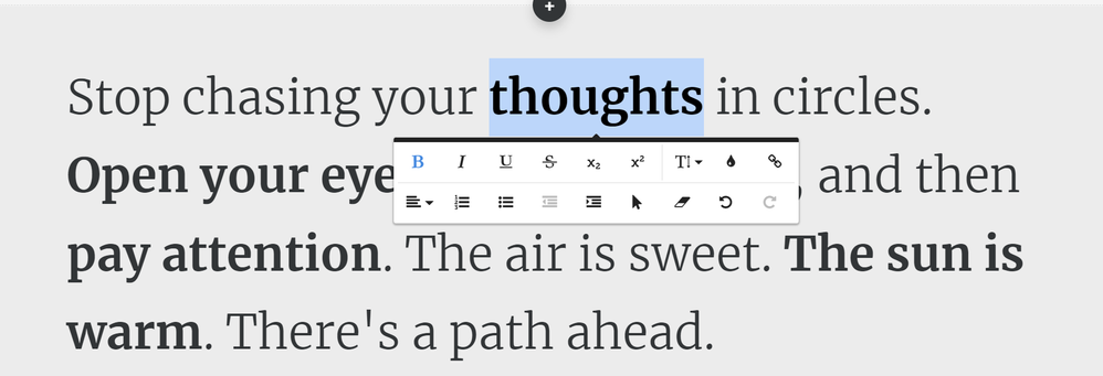 The quick menu works for changing some style elements like bold and font size, but the Bold/no Bold option is not always available.