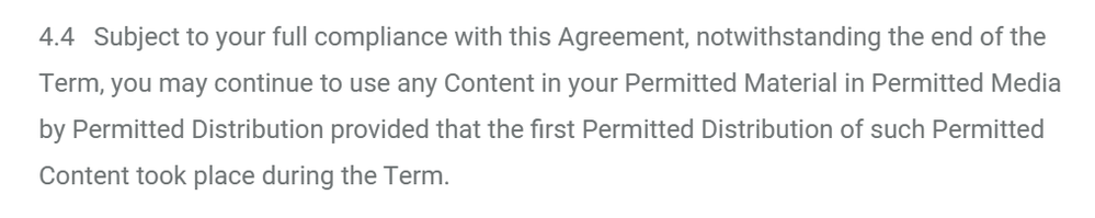 Bianca, I'm not a lawyer, either, but I agree with your clarified interpretation. It's similar to signing up for a streaming service for a month. You can binge watch their shows during that time, but when the subscription ends, you can't watch anymore.