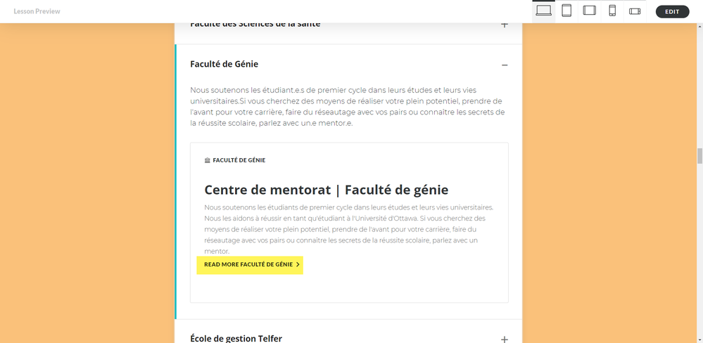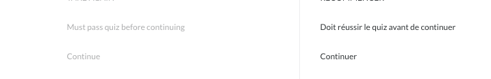 Hello, thank you for this exchange, it helped me answer that very same question. However, there is still an issue with the label "Read More" for the embedded weblinks. Even in Preview mode, and also in Review mode, the label does not translate into French. However, I do see the proper "En savoir plus" label in the course settings. How do I correct this?
