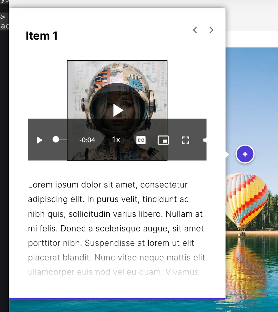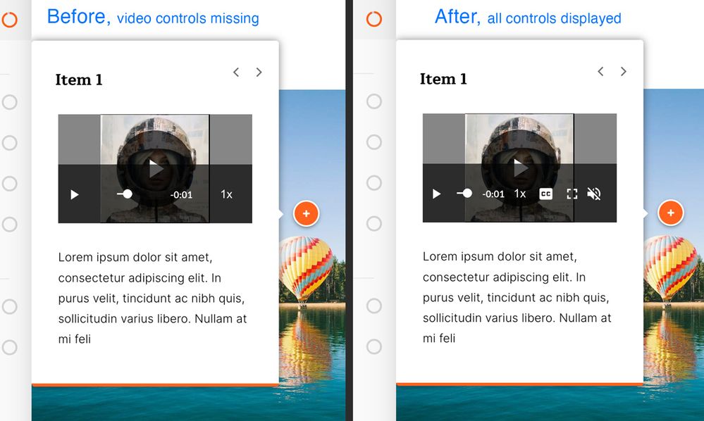 You can install this as a Theme Component. Notice when the video is within a small container (like inside labeled graphic popovers) several of the video controls are getting pushed off the viewable area. The css Rise used was likely not tested with such a small container size, here is a fix as shown in the 'after' image at right.