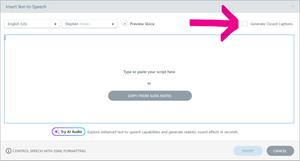 "Generate Closed Captioning" checkbox inside of Text-to-Speech feature no longer stays ticked