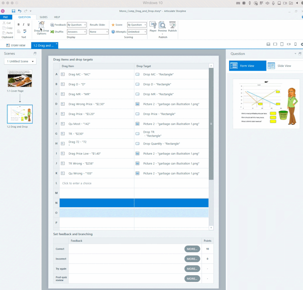 Thanks for reaching out and sharing your file! It sounds like you want to change the order of your drag and drop answers. Happy to help!