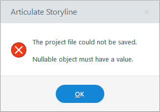 The Project could not be saved. The nullable object must have a value.