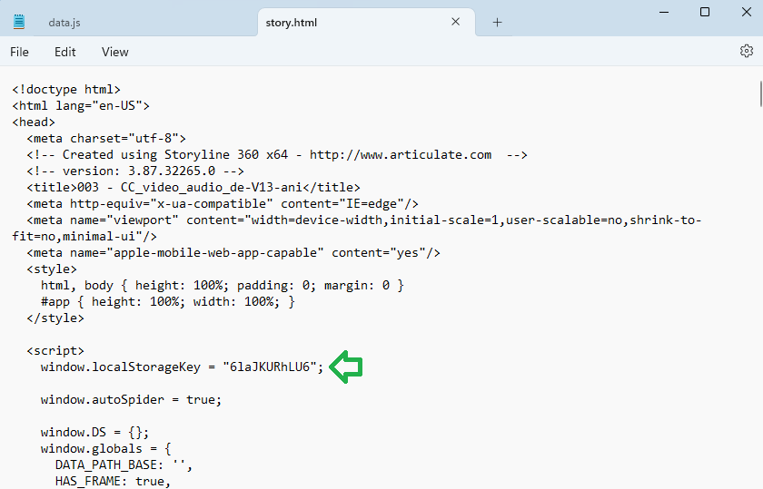 Is it possible to access the localStorage key used by a Storyline project when it's published to the web?