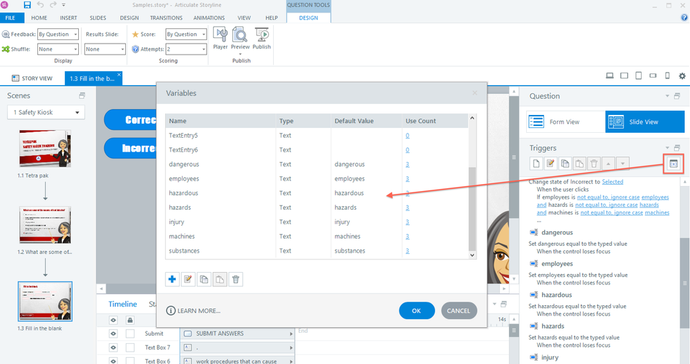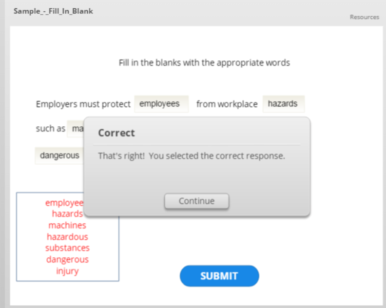 I've downloaded the example presentation for the fill in the blank. Mine mimics the presentation but when I go to preview, it just does not work. I don't know where I'm going wrong. I keep getting "You must complete the question before submitting." And I've typed in information in the boxes. I inserted "input/data entry" boxes. Was that wrong? Help!