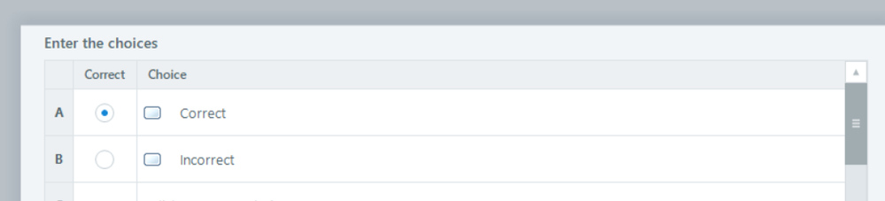You need to add the correct and incorrect buttons and then select the correct option