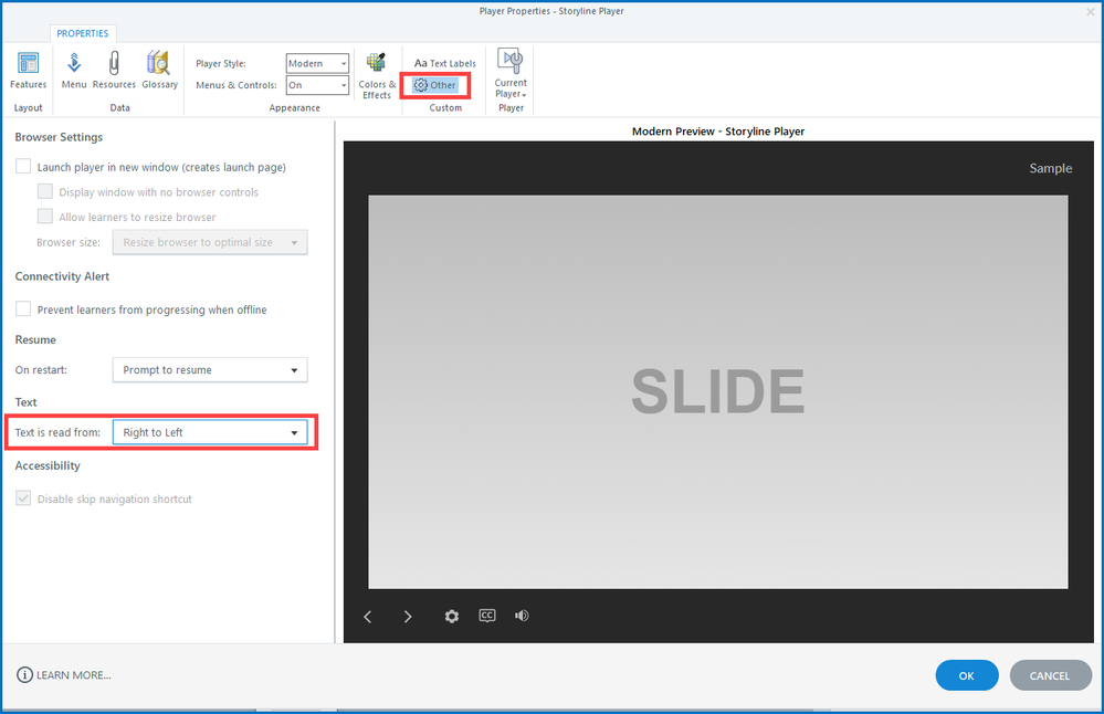I am working in Articulate Storyline 360 and this afternoon when I am working in the player of my post-test lesson all of the player components are reversed??? I am not talking about the sidebar being on the left or right. The play button is now at the bottom right corner of the play instead of the left. Everything along that same navigation strip is in reversed order. The menu is in reverse order...Instead of 1.1 (Name of slide title), the menu now reads, (Name of slide title) 1.1.1. The player tabs are on the upper left-hand corner of the player screen instead of the right.... and the Course title is now on the upper right-hand corner of the play screen. I have a screenshot attached below. Has anyone else ran into this and, if so, how to correct?