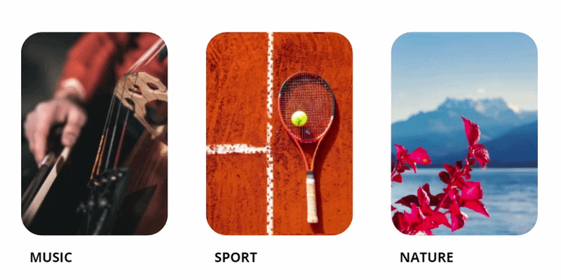 I have a row of five rounded cards and would like to achieve a specific micro-interaction: When a user hovers over a card, the image inside should smoothly but slightly zoom in, but the outer dimensions (the container) of the card must stay exactly the same to keep the grid stable.