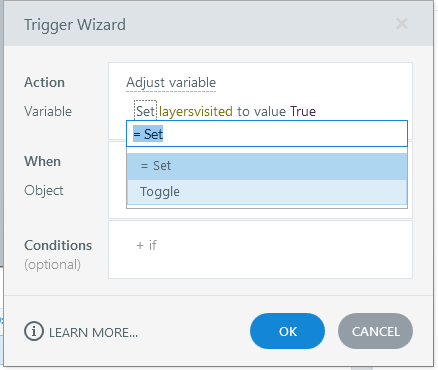You will also need a variable to trigger the final layer. This will also be a true/false variable. We'll call this variable layervisited.