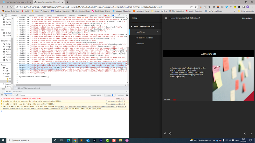 2. Look at any JavaScript in the Storyline file that may have errors.