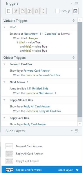 I'm trying to set up one of my slides so that the Next button doesn't appear until 3 buttons on the slide have been clicked. I've tried starting the Next button off as Hidden or Disabled and use Tr...