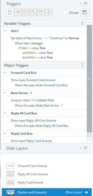 I'm trying to set up one of my slides so that the Next button doesn't appear until 3 buttons on the slide have been clicked. I've tried starting the Next button off as Hidden or Disabled and use Tr...