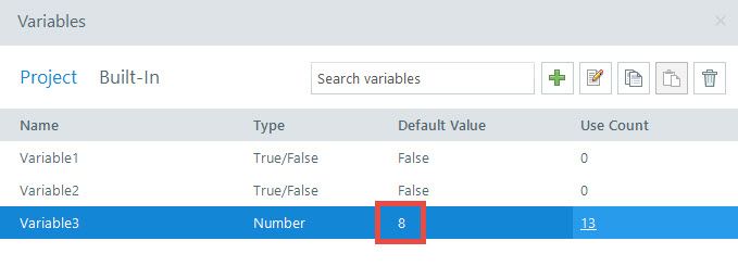 Since you want to track the 8 correct responses, the default value of the variable should be 0.