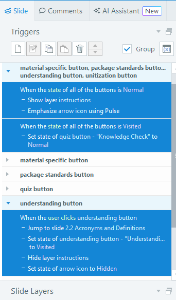 I am trying to have the "arrow icon" chang its state to hidden once a user clicks on the button labeled "understanding button". When I preview this, the button does not change its state. I am hoping ...