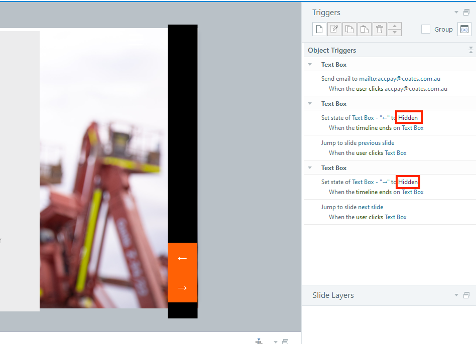 I have a next and previous button that I have hidden until the timeline ends or voice over has read the page. We want the user to listen and read the page without being able to skip. (They will skip through without learning just to get it finished) However, the trigger disappears after the timeline ends and this is an issue if the user walks away to help a customer or answers the phone. How can I get it to stay on the page once everything ends?