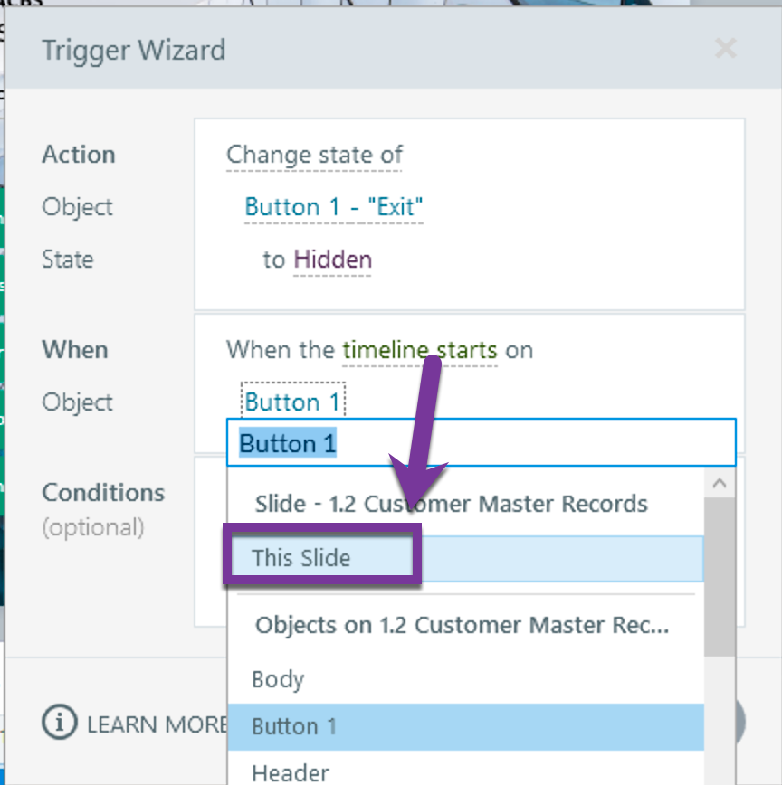 I am able to set the "next" button to hidden and then visible again as the state of the objects (markers) clicked on changed to visited. The problem I am having is if someone goes to the previous screen, the next button is hidden even though the marker's state is still visited. Thus one cannot move forward in the training. Is there a way to enable someone moving back and forth in the training? Thanks!