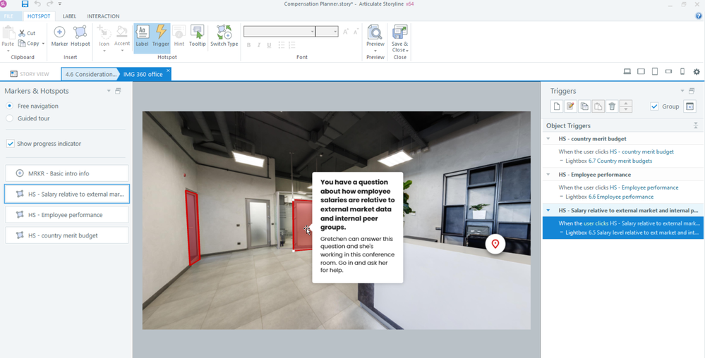 The problem I'm running into is I would like users to hover over the hotspots to see the "scenario" before clicking and being kicked to a lightbox slide.