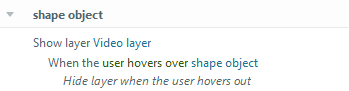 Here is the visual demonstration:This approach will ensure that the video is always displayed and plays when the other object is hovered over.