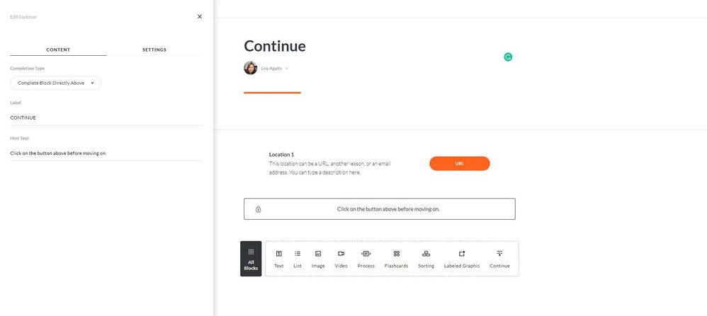 Hi Kevin! You can use a continue button to require your users to click your URL button before moving on to your quiz. You can use the settings below: