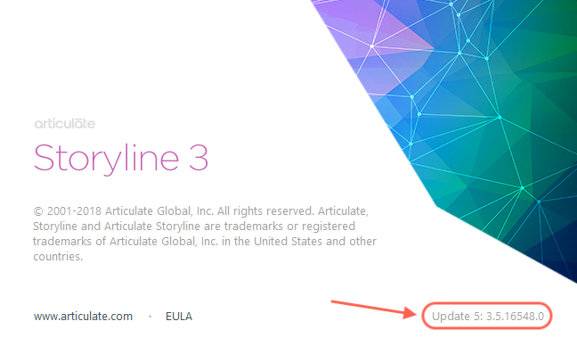 Let's double check that you and I are using the same update of Storyline 3. Click the Help tab, then click About Storyline. Is this what you see there? Update 5: 3.5.16548.0