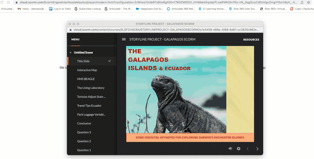 You can control the Resume Behavior in the Player. Since you are looking to have the learner return to the same place where they left off, you’ll want to use “Always Resume.”