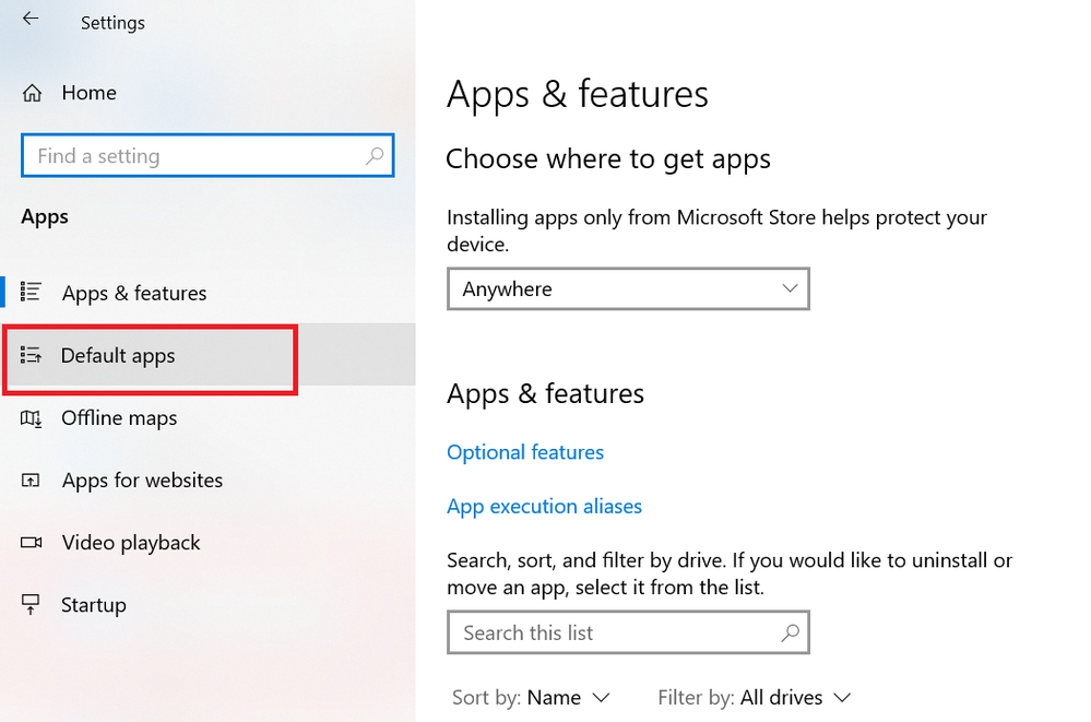 Click on Default Apps