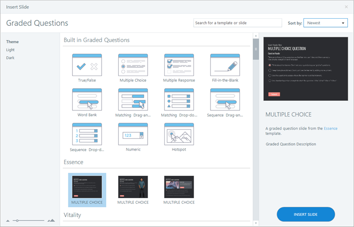 Hello, I've been using Storyline forever, but we just recently switched to Storyline 360. I really can't find True/False. When I go to New Slide > Graded Question, first I see the 3 Affinity Multiple Choice options. If I click on Affinity to turn it off, I see all of the other templates with each of their 3 Multiple Choice options. How do I get a True/false?