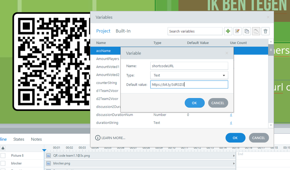 And added the QRcodeURL to both Storyline as a variable and Firebase in the settings.