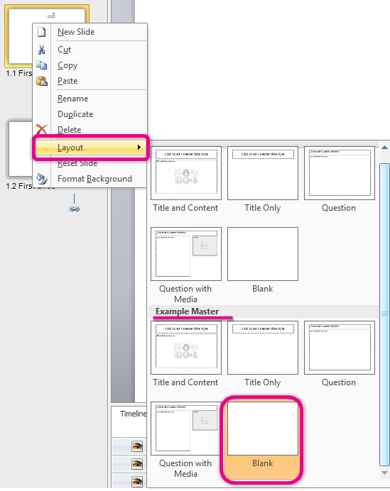 I just used the trick on the feedback master to change the layout on slide layers, and it was very useful seeing the bright color.