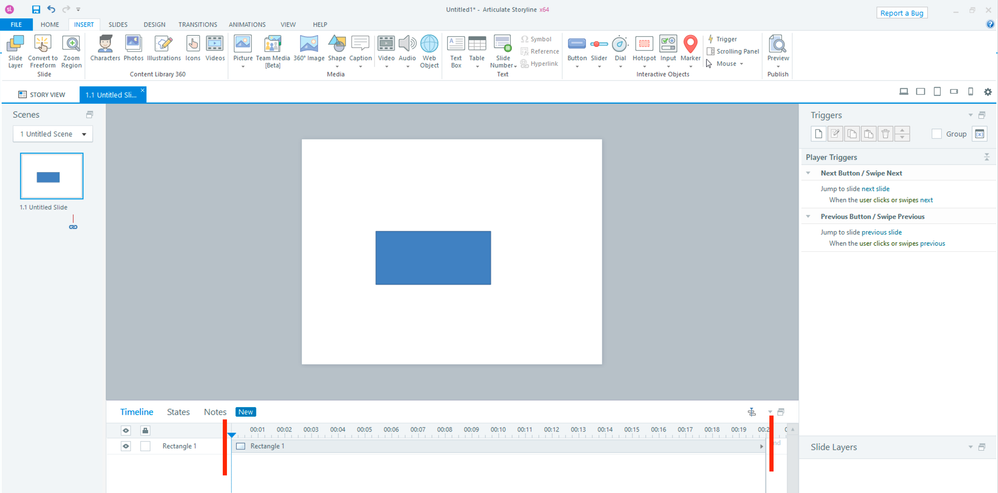 Another way to create a similar timer is to do it in a slide layer, setting the timeline to 1 second or however long we need it to be, and jump current time on the timeline to 0 to restart the timeline when timeline completes. However, I need layers to make my courses more interesting, therefore, I wish not to approach it this way.