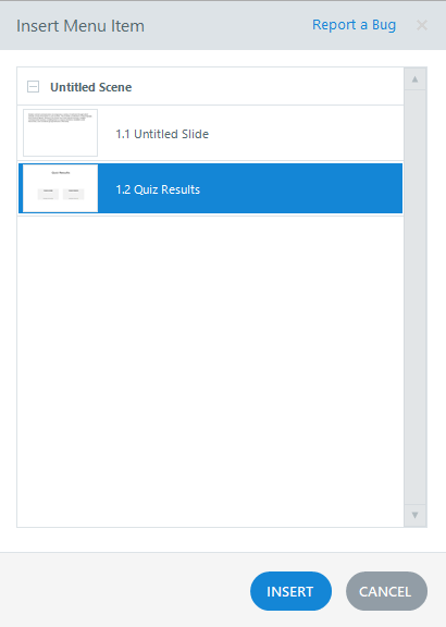 From the dialog that appears, select the result slide you wish to add, and click Insert: