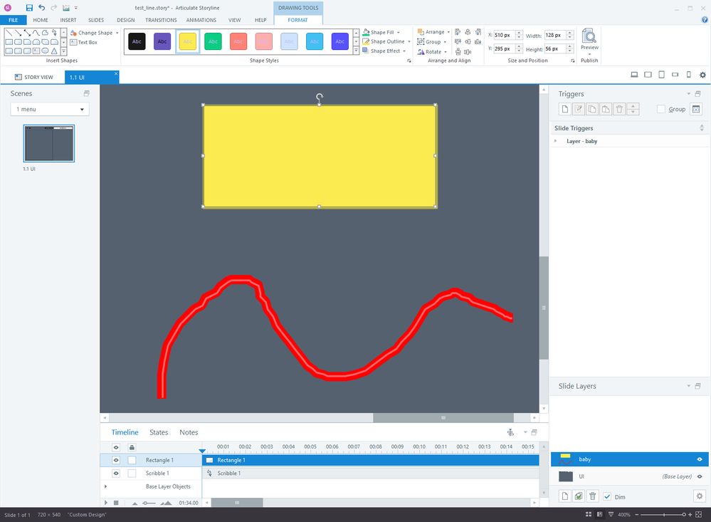 I chose the scribble shape, then changed the outline color to RED and increased the line thickness to 5px.